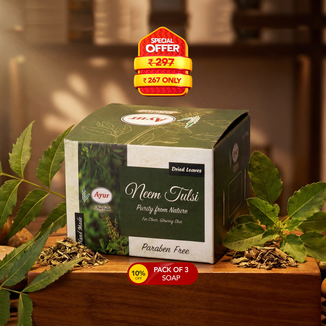 Rediscover the secret to clear, radiant skin with Ayur Herbals Neem Tulsi Handmade Soap.